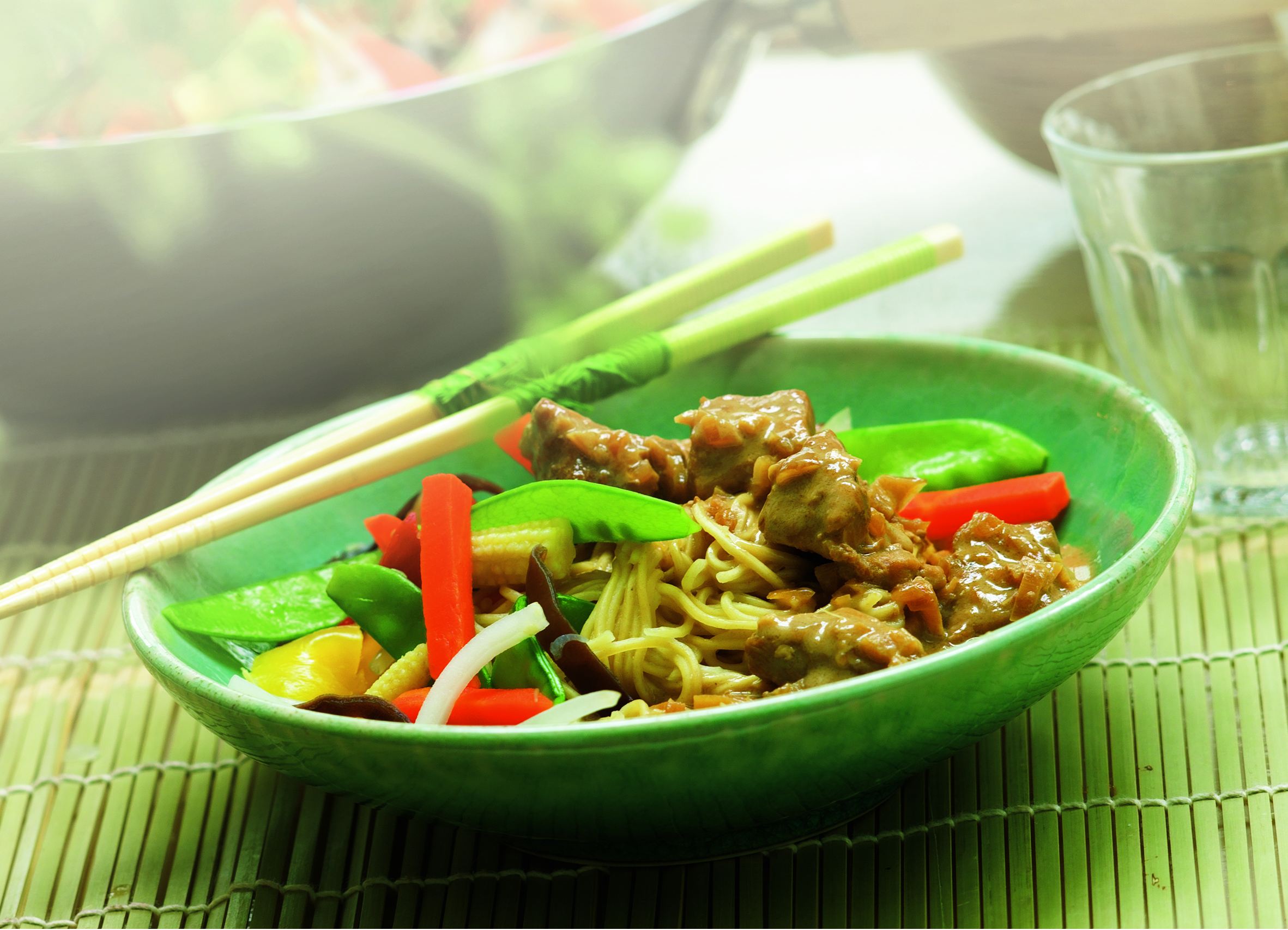 Svinekød i ketjapkokos med finthakket ingefær